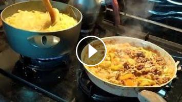 Муж с детьми готовят себе обед, пока я лежу в больнице. Макароны по-флотски в исполнении Алексея.