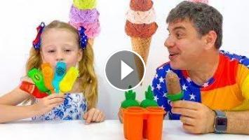 Настя хочет мороженное , но все магазины закрыты. Тогда папа решает приготовить мороженное дома из фруктов и ягод.