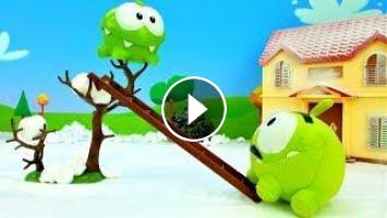 Приключения Ам Няма - детские мультики без слов. Папа Ам Ням и сын гуляли на улице зимой, и малыш решил поиграть в игры. Сначала он рисовал лапой на заснеженной машине, а потом большой грузовик привез детали для горки. Сейчас горку установят, и Ам Ням сможет на ней прокатиться. А, чтобы было веселее, папа om nom дал сыну надувную ватрушку.