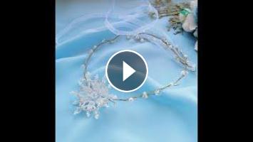 Length 50 cm. Diameter of the snowflake 5.5 cm. The size of the wreath is universal, adjustable. Attached to the hairstyle with hairpins, invisible hairpins or ribbon for the eyelets (ribbon included).