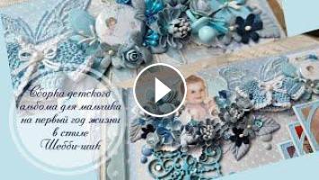 Собираем вместе альбом для мальчика на первый год жизни в стиле шебби-шик. Размер альбома 25х28 см. Тканевый переплет. Набор скрапбумаги “Shabby baby boy redesign” 30,5×30,5см Фабрика Декору.