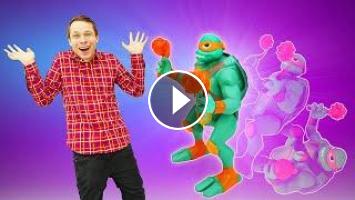 Смотри, какие у Федора новые классные игрушки и игровые наборы. Это же классные игрушки Черепашки-ниндзя из мультсериала Эволюция черепашек ниндзя. У них экипировка прямо как в мультике: одати, тонфы, бо и кусари-фундо! А еще черепашки ниндзя умеют показывать классные трюки и приемы. У Микеланджело это ниндзя-атака в прыжке. Рафаэль и Донателло продемонстрируют свой секретный прием - ниндзя-атака сальто в сторону. А Леонардо - ты не поверишь - умеет использовать атаку ниндзя сальто назад. Невероятно! Отрегулируй положение рук и черепашек, приведи в исходную позицию и отрабатывай новые приемы вместе с любимыми игрушками. Теперь барон Драксум не сможет нас одолеть - смотрите, это же он на базе черепашек! Вперед, черепашки, приключения начинаются!