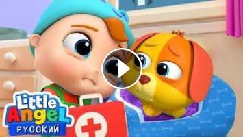Пёсик Малыша Саши неважно себя чувствует и совсем не хочет сегодня играть. Мама вызвала ветеринара, который сразу же вылечил Бинго и теперь он совершенно здоров! #littleangelрусский #малышсаша #развивающиепесенки