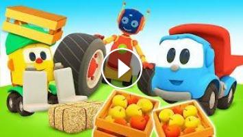 Грузовичок Лева и Лея собирают большой погрузчик, чтобы погрузить яблоки в амбар.