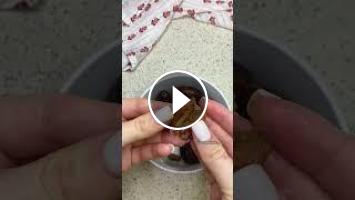 1. Финики заливаем горячей водой на 5-7 минут, затем очистить от кожуры, косточек и пробить блендером до однородной массы.