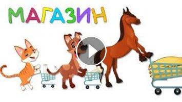 Животные в магазине покупают еду и увозят её в тележке. Увлекательный видеоряд показывает, как животные едят свои любимые лакомства. В основе сюжета лежит Раннее развитие по системе Монтессори.