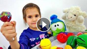 Привет! Мы снова играем в магазин. Сегодня в наших играх для детей участвует и маленький, но очень прожорливый монстрик АМ НЯМ. Он, как всегда, желает полакомиться конфетой. Катя решила купить ему Чупа Чупс. Поэтому прямо сейчас мы отправимся в супермаркет.