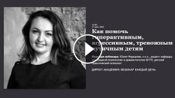 На вебинаре будут рассмотрены особенности поведения и психического развития детей. Отмечены возрастные характеристики проявления гиперактивности, агрессивности, тревожности, аутичности у детей дошкольного и младшего школьного возраста. Что означают данные понятия и что следует знать взрослым о таких особенностях ребенка. Для родителей и педагогов предложены рекомендации и практические упражнения по организации учебного процесса и эффективного взаимодействия с такими детьми.