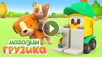 Развивающие мультики для детей Магазин Грузика. Сегодня в гости к Грузику едут котенок и щенок. А почему они так торопятся? Животные хотят есть. Грузик с удовольствием их накормит, нужно только найти подходящую еду в бассейне с шариками. Жми кнопку, Грузик! А ты знаешь, что едят животные?
