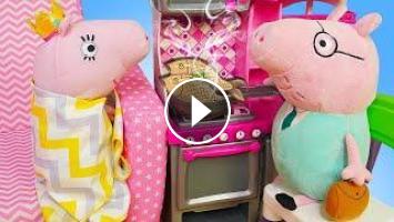 Игрушки Свинка Пеппа и игры в готовку в видео для детей. Мама Свинки Пеппы приболела. Папа Свин отправил её отдыхать, а сам пошел на кухню, чтобы приготовить обед. Нужно сделать салат и пожарить рыбу. Папа не очень хорошо готовит, поэтому ему нелегко справиться с продуктами. Пеппа и Джордж пришли с прогулки и вызвались помочь с готовкой. Смотри, как игрушки Свинка Пеппа замечательно готовят!