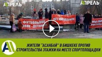 В Бишкеке жители микрорайона Асанбай уже на протяжении месяца выходят на акции протеста с требованием не застраивать их детско-спортивную площадку. Они утверждают, что строительная фирма "Альфа строй" планирует на территории площадки построить многоэтажный дом. В самой же компании утверждают, что таких планов у них пока нет.