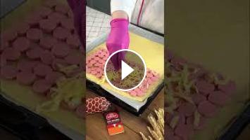 Колбаски Асл Барака нарезаем так, как показано на видео,раскатываем тесто добавляем сосиски,сыр,и накрываем оставшимся тестом,украшаем по желанию,намазываем тесто желтком и кунжутом, отправляем в духовку на 25-30 минут на 180°.
