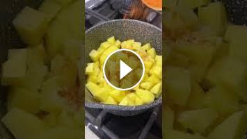 3.Картофель нарезаем на кубики, добавляем в кастрюлю, добавляем специи, заливаем кипятком, чтобы полностью все закрылось и варим еще 20 минут.