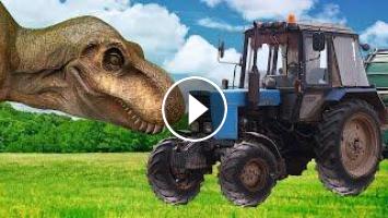 По полям синий трактор смотреть динозавр пришел. Динозавр испортил трактор и трактор сломался. Малыш на крутом внедорожники приехал на помощь к маме.