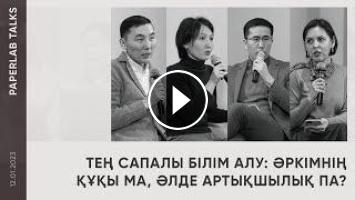 12 қаңтар күні PaperLab зерттеу орталығы «Тең сапалы білім алу: әркімнің құқы ма, әлде кейбіреуге берілетін артықшылық па?» тақырыбында ашық талқылау өткізді. Спикерлер қазіргі таңда мектептердегі сапалы білім алу жағдайларындағы теңсіздік және оған әсер ететін негізгі факторлар жайында сөз қозғады.