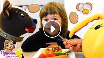 Новое видео про рецепты для детей Привет, Бьянка! В нем мама Маша Капуки готовит белковые котлеты, а Бьянка и Карл их дегустируют. Белок очень полезен для детей и взрослых - он делает их сильнее! Поэтому Маша Капуки предложила зайке Лаки и собачке Шоколадке приготовить белковые котлеты. Понадобятся: куриная грудка, творог и яйца. Перемешаем и отправим в духовку! Смотри, понравятся ли Бьянке и Карлу домашние котлеты.