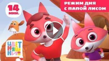 Папа Лис знакомит героев мультфильма "Цветняшки" с правильным распорядком дня. Ведь если хочешь быть сильным и здоровым, надо уметь правильно спланировать день успеть и сделать зарядку, и пообедать, и вовремя лечь спать.