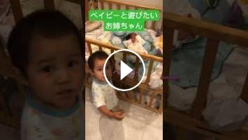 【1歳8ヶ月】【生後1ヶ月】弟にめろめろの女の子 / She seems to find her brother adorable #shorts #クォーター #子育て #育児 #メロメロ #姉弟