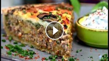 Восхитительный Пирог с мясом. Вкуснее вы точно не ели, гарантирую! Открытый пирог Киш с мясной начинкой в средиземноморском стиле. Как аккомпанемент, к пирогу мы подадим пикантный Греческий йогуртовый соус «дип» идеальный к лепешкам, пирогам, печеному мясу, рыбе и овощам.