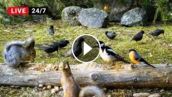 TV for cats, dogs, parrots, budgies and all nature lovers. Non-stop streaming of little birds and Eurasian Red Squirrels.