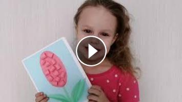 Васёна сделала простую открытку на 8МАРТА для бабушки своими руками. Аппликация из цветной бумаги, подарок маме, бабушке своими руками!