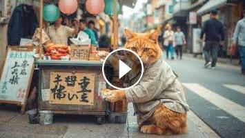 Ginger Cat Sells Sushi at the Market, Feeds Cats and Helps Homeless Kittens????#cat #cats ????
