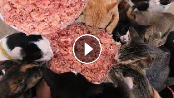 Many Cats eating raw chicken https://youtu.be/owK4IKk3wwM