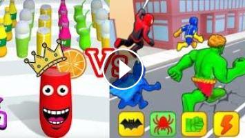 In the game, you need to manipulate juice of the same color, eat juice of the same color to enlarge yourself, and at the same time avoid juices of other colors. 12 If the player encounters other juice colors, it will become smaller. When the player reaches the end, the more juice he has, the more diamonds he will get.