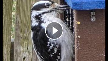 Lots of fun back yard birding activity to observe. You will see many doves, blue jays, downy woodpeckers, hairy woodpeckers, red-bellied woodpeckers, and of course plenty of house sparrows and squirrels. Maybe you can use this a pacifier for your cat or whatever. Enjoy!!
