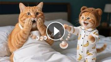 ???? Ginger Kitten noticed Mama Cat’s sadness and peeked at the screen, realizing the necklace was far too expensive. Later that day, while wandering around feeling helpless, Ginger met his best friend. Together, they came up with a brilliant idea—to collect leftover seashells and craft a necklace themselves.
