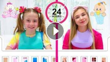 Nastya and her friend want to play all day. Dad gave them a 24-hour baby challenge.