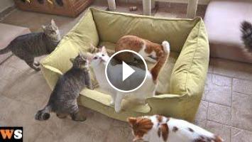 We surprised our outdoor cats with a giant bed and they loved it! This is the first time they're seeing a bed as big and fluffy as this; so naturally it became a very popular sleeping spot for most of them. Here is their reaction..