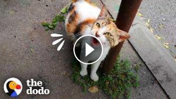 Stray mama cat about to give birth walks up to stranger to ask for help ????