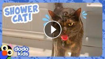 You probably thought all cats hate water, right?! Well, think again! Meet Pym, the shower cat. There is nothing she loves more than taking a nice, soothing shower. But never alone! Her showers have to be taken WITH her mom, and that can be a bit of a sticky kitty situation. Can we help Pym and her mom find a different way for Pym to enjoy the water?